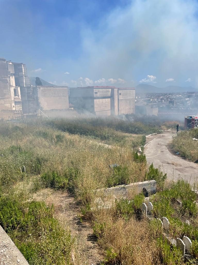Un grande incendio è scoppiato al cimitero di Poggioreale di Napoli, sul lato del forno crematorio. Il rogo è divampato nella zona del fondo Zevola, dove ci sono le fosse di interro, e dove è attualmente presente anche un campo degli operai per il recupero delle salme del crollo delle congreghe dello scorso ottobre.