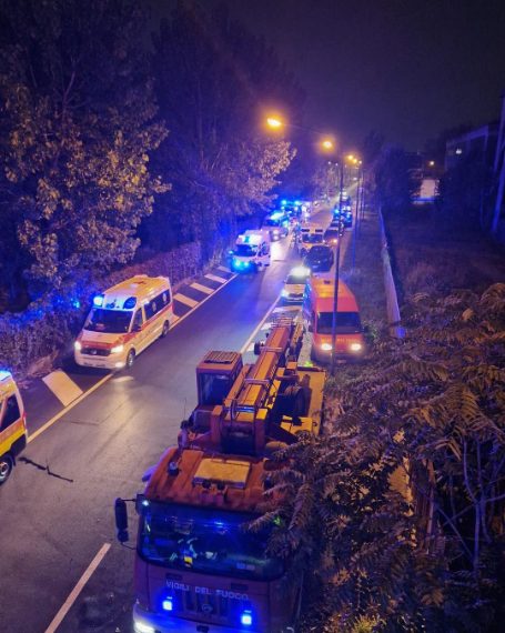 Stando a quanto finora noto, il bus sarebbe precipitato dal cavalcavia della Libertà per poi finire sulla sottostante via Pila. Il veicolo si è poi incendiato a causa dell'impatto. Sono in corso le operazioni di soccorso.