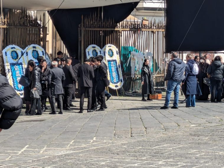 A Napoli si gira Made in Yiwu, film cinese. Il set di un tipico funerale cinese nella chiesa di piazza Mercato.