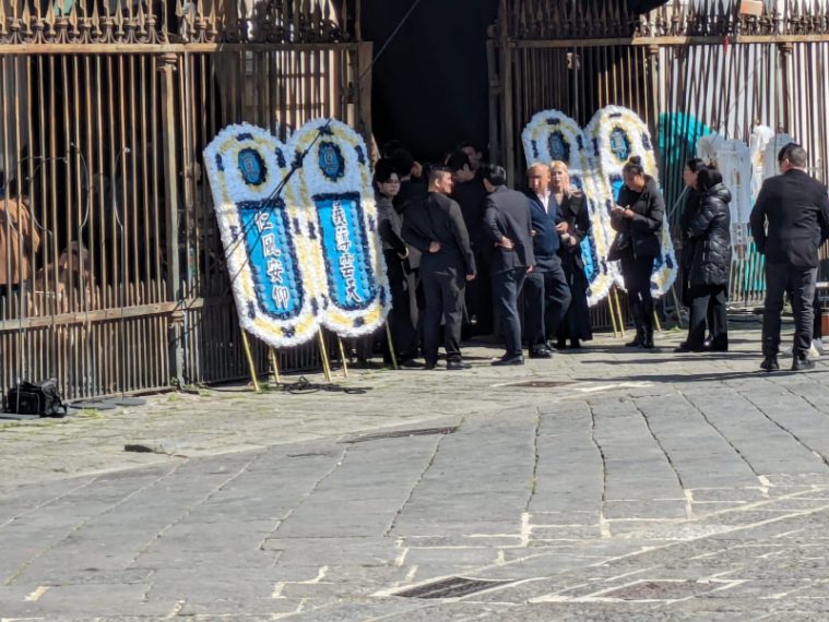 A Napoli si gira Made in Yiwu, film cinese. Il set di un tipico funerale cinese nella chiesa di piazza Mercato.
