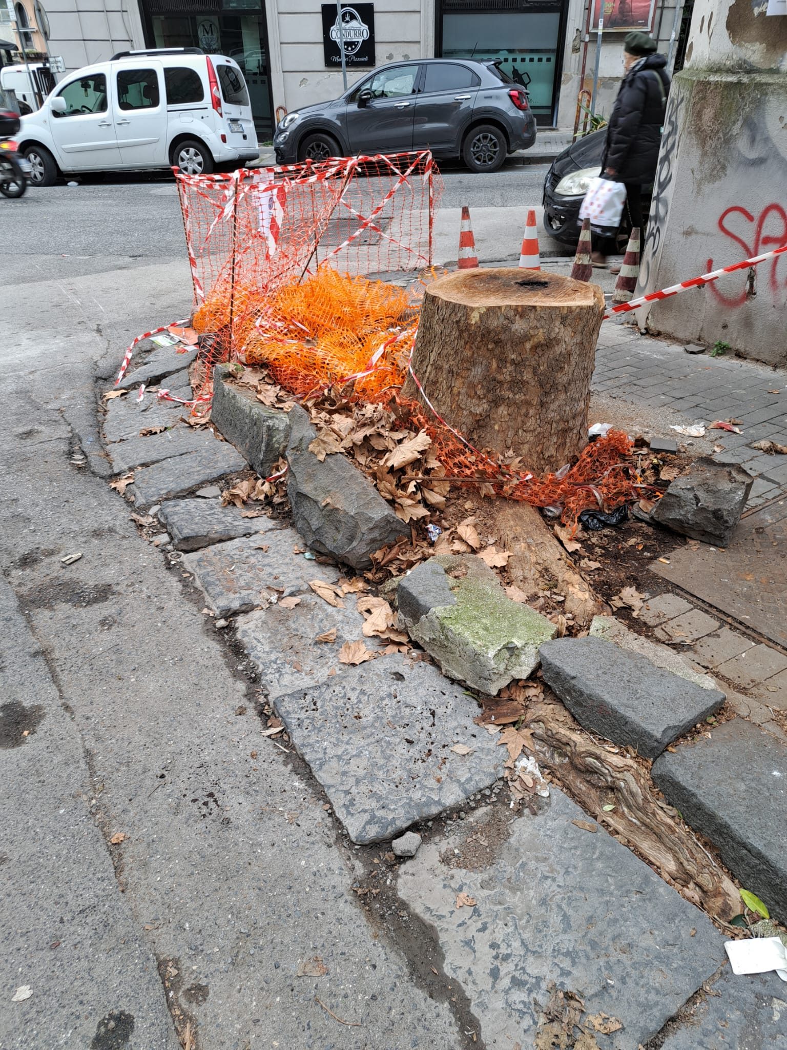 Vomero, operai del Comune riparano buche, panchine e tronchi