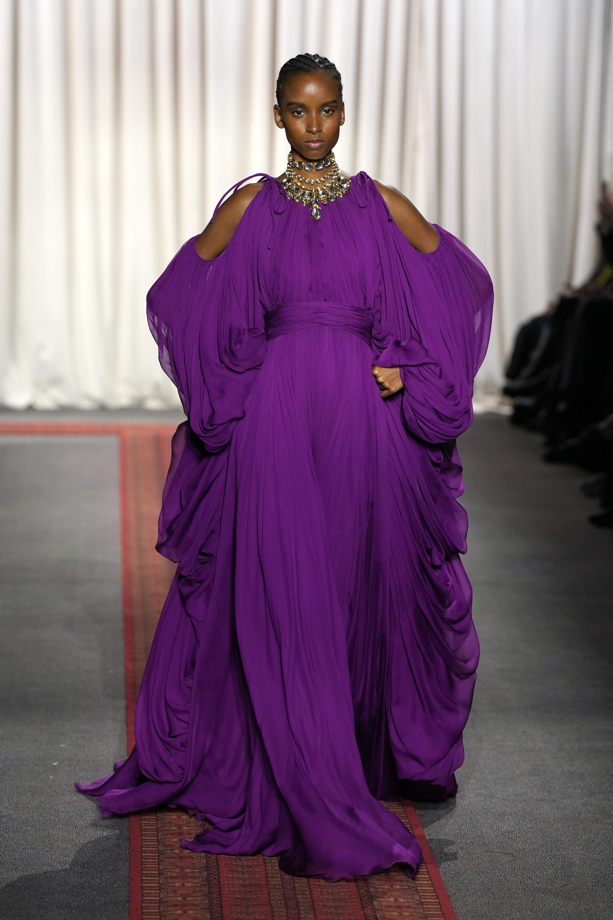 Vaporose gonne, drappeggi tridimensionali, colori pastello alternanti a nuance vitaminiche e maxi stripes sfilano alla Paris Fashion Week sulla passerella Haute Couture Primavera/Estate 2025