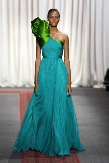 Vaporose gonne, drappeggi tridimensionali, colori pastello alternanti a nuance vitaminiche e maxi stripes sfilano alla Paris Fashion Week sulla passerella Haute Couture Primavera/Estate 2025