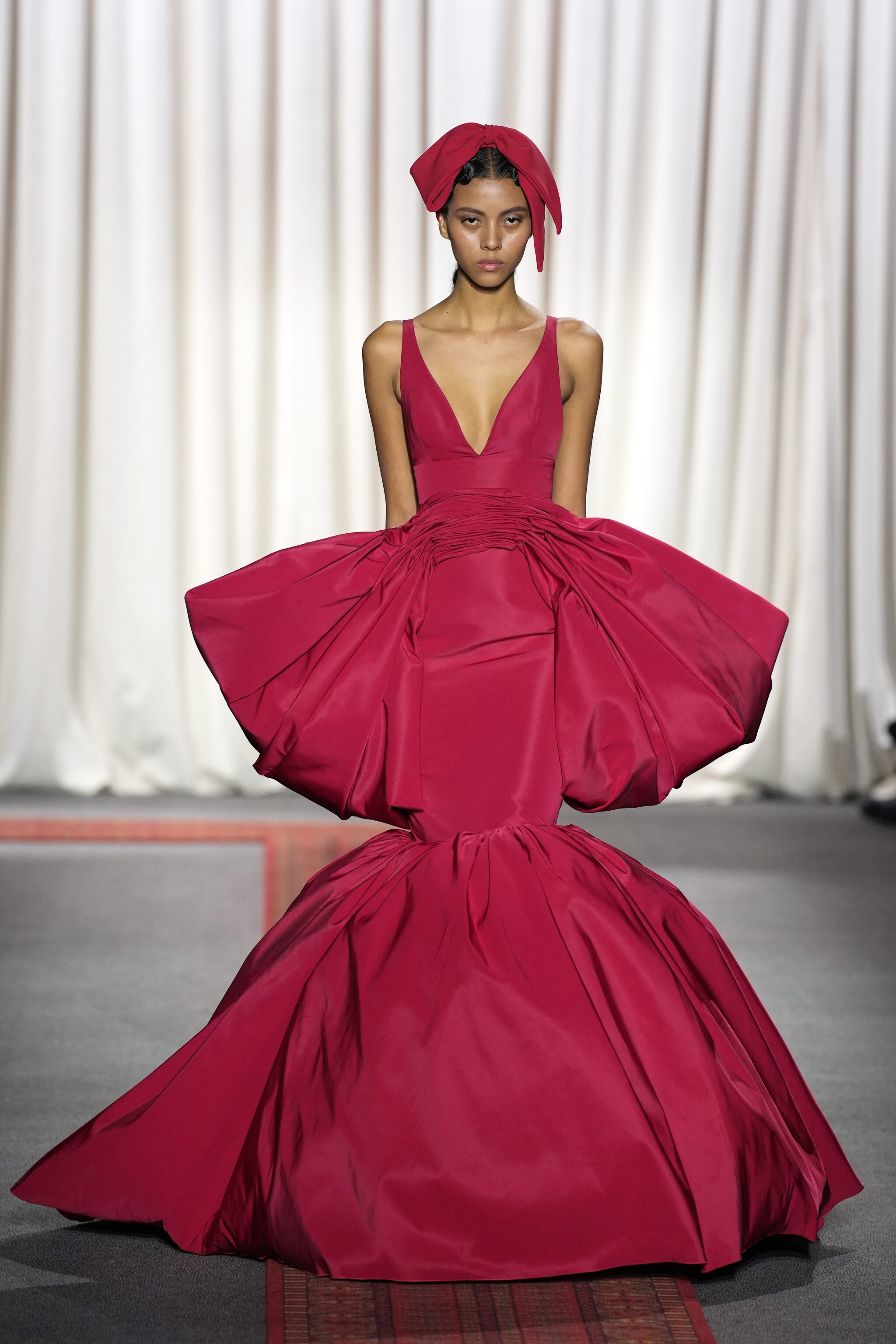 Vaporose gonne, drappeggi tridimensionali, colori pastello alternanti a nuance vitaminiche e maxi stripes sfilano alla Paris Fashion Week sulla passerella Haute Couture Primavera/Estate 2025