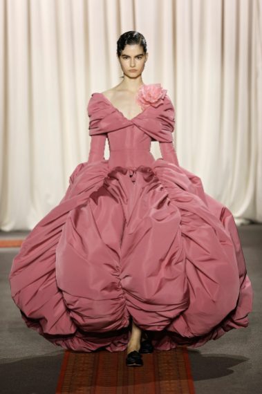 Vaporose gonne, drappeggi tridimensionali, colori pastello alternanti a nuance vitaminiche e maxi stripes sfilano alla Paris Fashion Week sulla passerella Haute Couture Primavera/Estate 2025