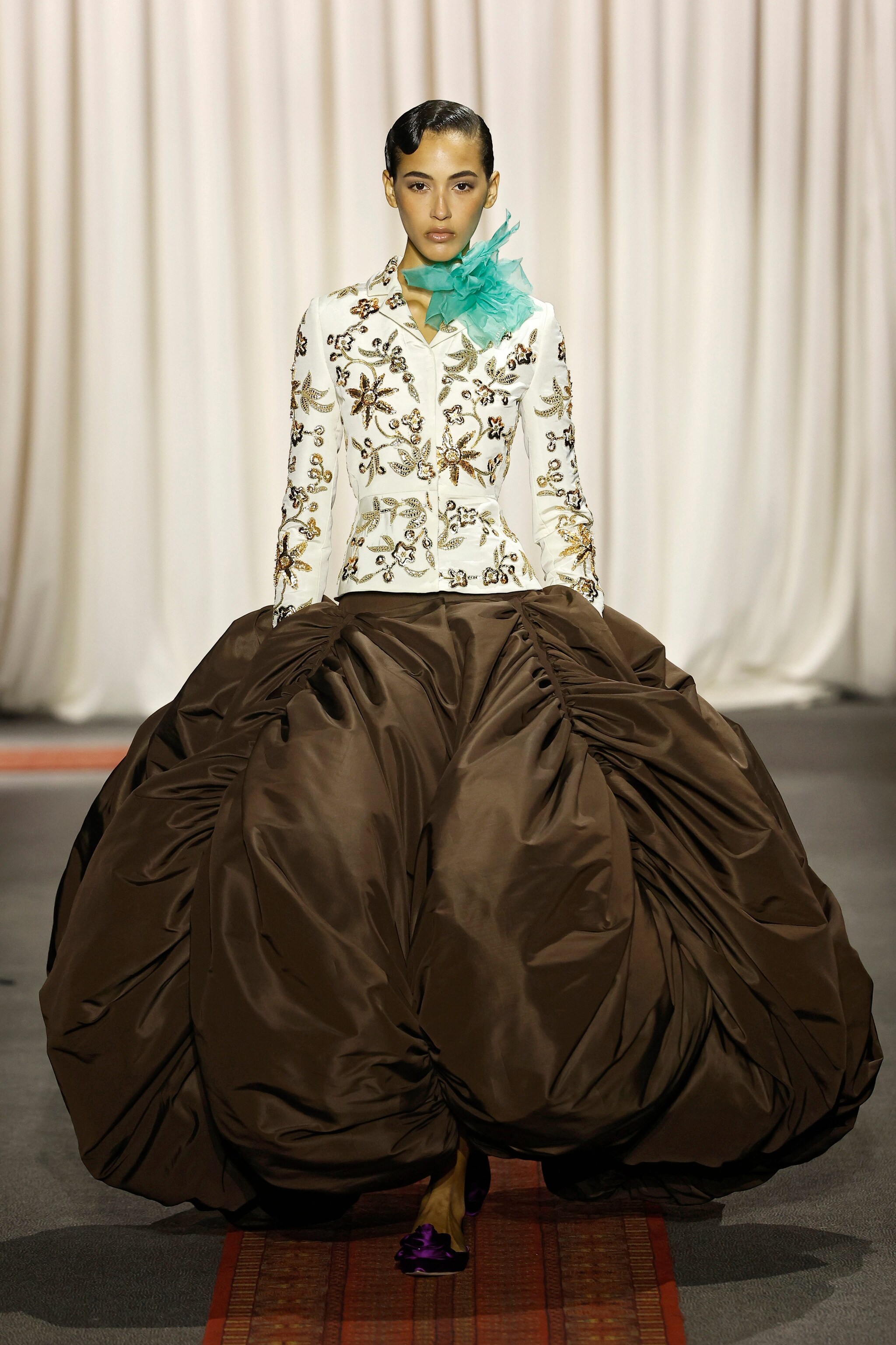 Vaporose gonne, drappeggi tridimensionali, colori pastello alternanti a nuance vitaminiche e maxi stripes sfilano alla Paris Fashion Week sulla passerella Haute Couture Primavera/Estate 2025