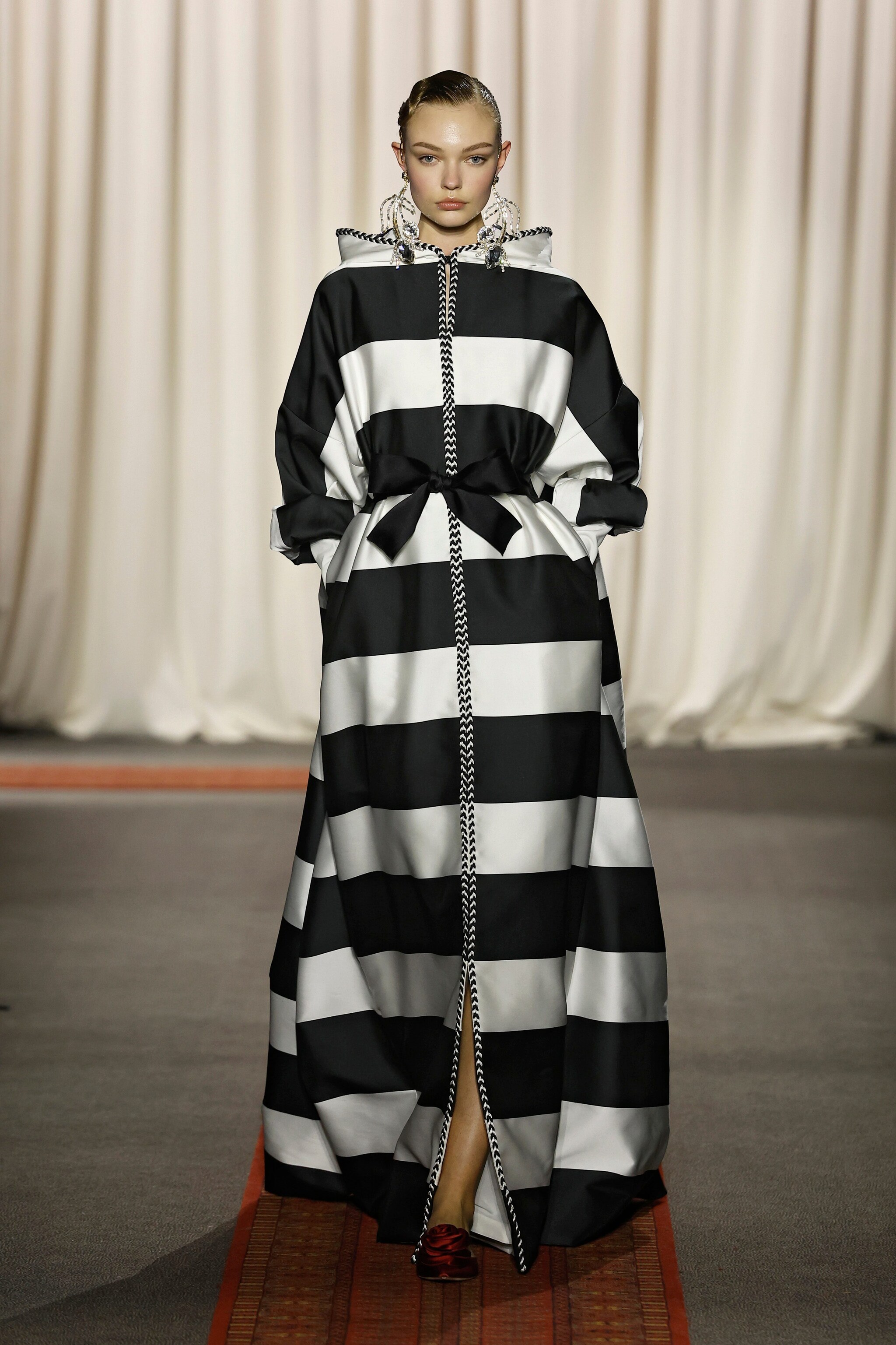 Vaporose gonne, drappeggi tridimensionali, colori pastello alternanti a nuance vitaminiche e maxi stripes sfilano alla Paris Fashion Week sulla passerella Haute Couture Primavera/Estate 2025