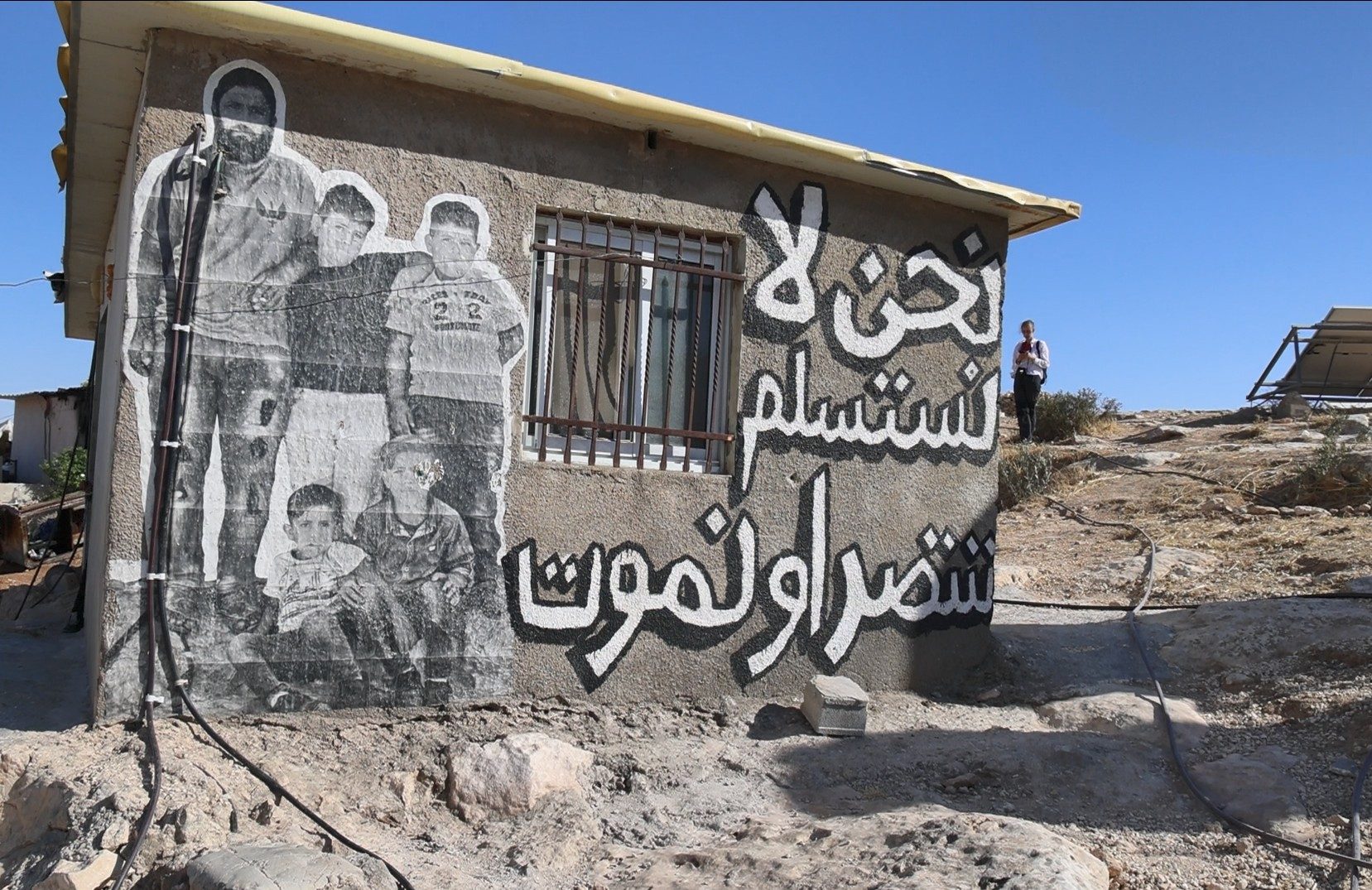 Immagini dei murales realizzati sulle abitazioni del villaggio palestinese di Khallet at Dabaa, nella regione della Massafer Yatta in Cisgiordania. Il villaggio è stato in gran parte demolito delle forze armate israeliane. Le persone che vivevano nelle case sono costrette a vivere nelle grotte per non lasciare la terra che sarebbe preda immediata delle colonie illegali israeliane.
