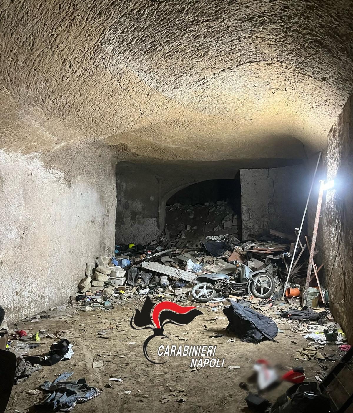 I carabinieri hanno scoperto che una antica galleria della Napoli sotterranea, nel rione Sanità, era diventata una discarica e veniva usata dai ladri per nascondere i mezzi rubati: tra i cunicoli rifiuti di ogni tipo, rottami e due motociclette rubate per un valore complessivo di 50mila euro.