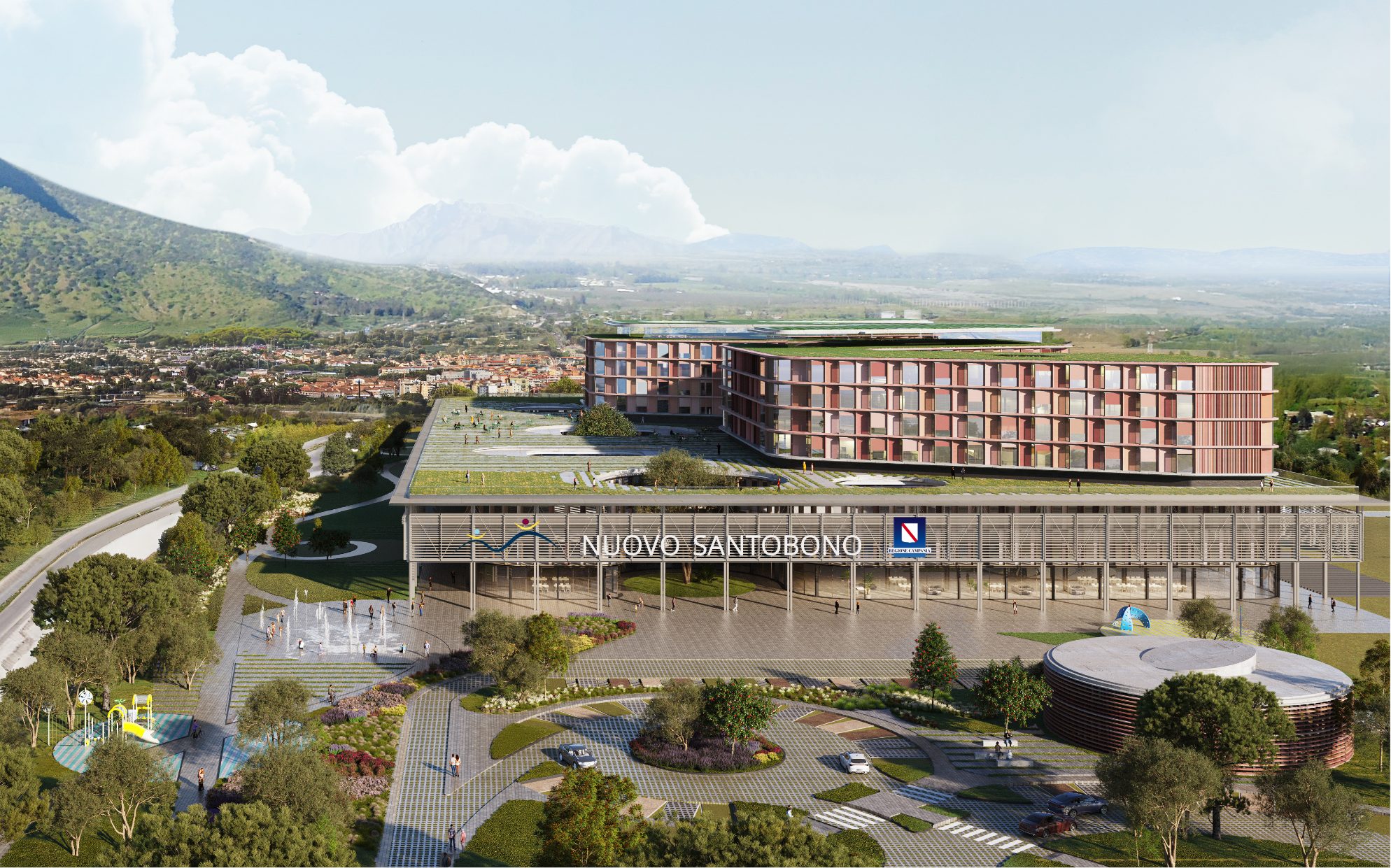 Svelato il progetto del nuovo Ospedale pediatrico Santobono di Napoli, nella zona di Ponticelli. Un grande presidio sanitario, opera dello studio di architettura catalano De Pineda, su una superficie di oltre 85mila metri quadrati.
