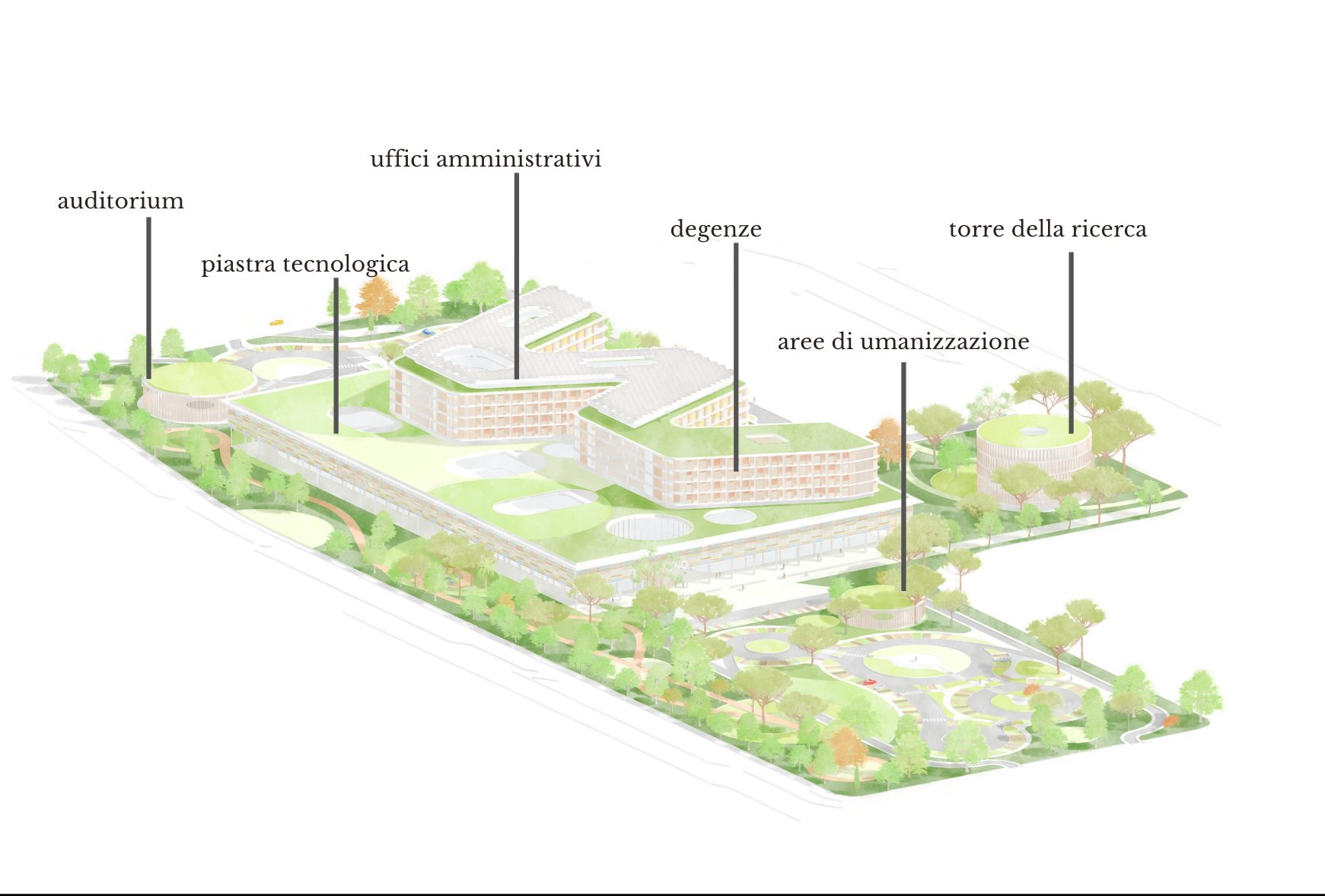Il nuovo ospedale pediatrico Santobono a Napoli: prati fioriti e torre di ricerca a Ponticelli