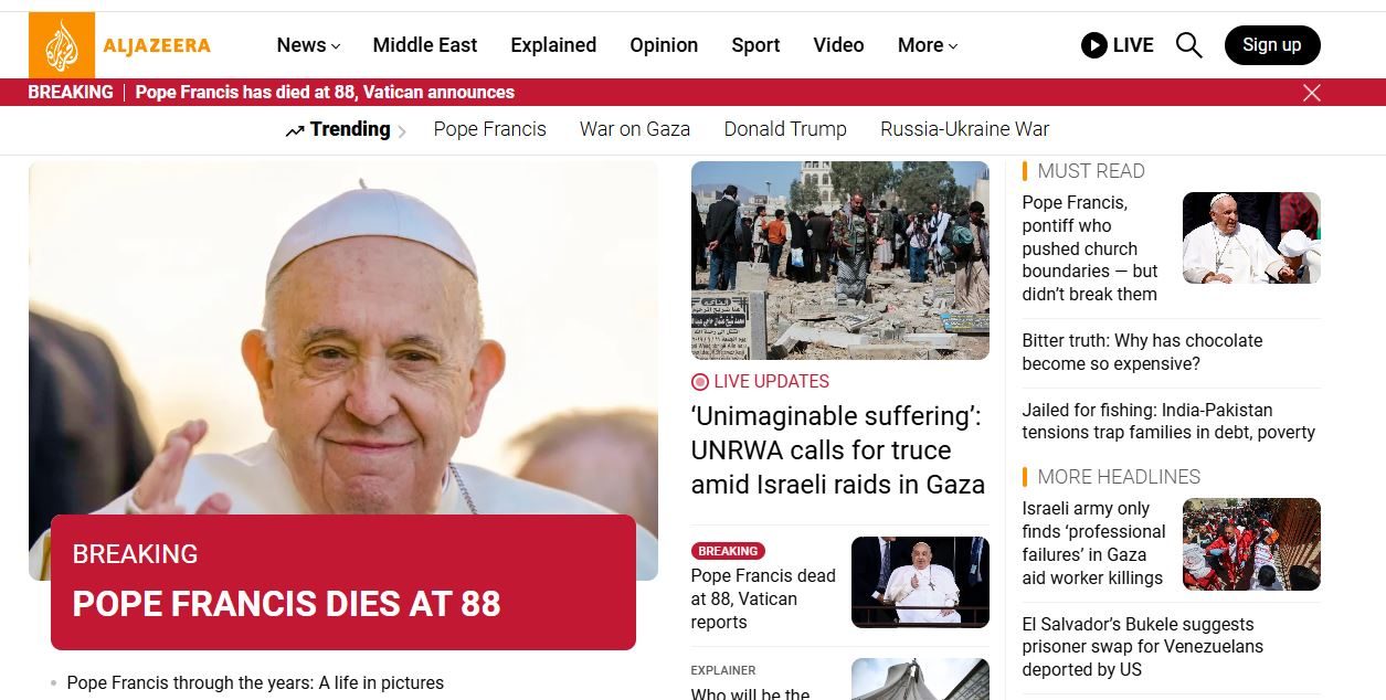 Da Al Jazeera alla Tass, dal Sidney morning Herald a La Nacion, al New York Times: la notizia della morte di Papa Francesco è in apertura di tutti i siti di informazione del mondo