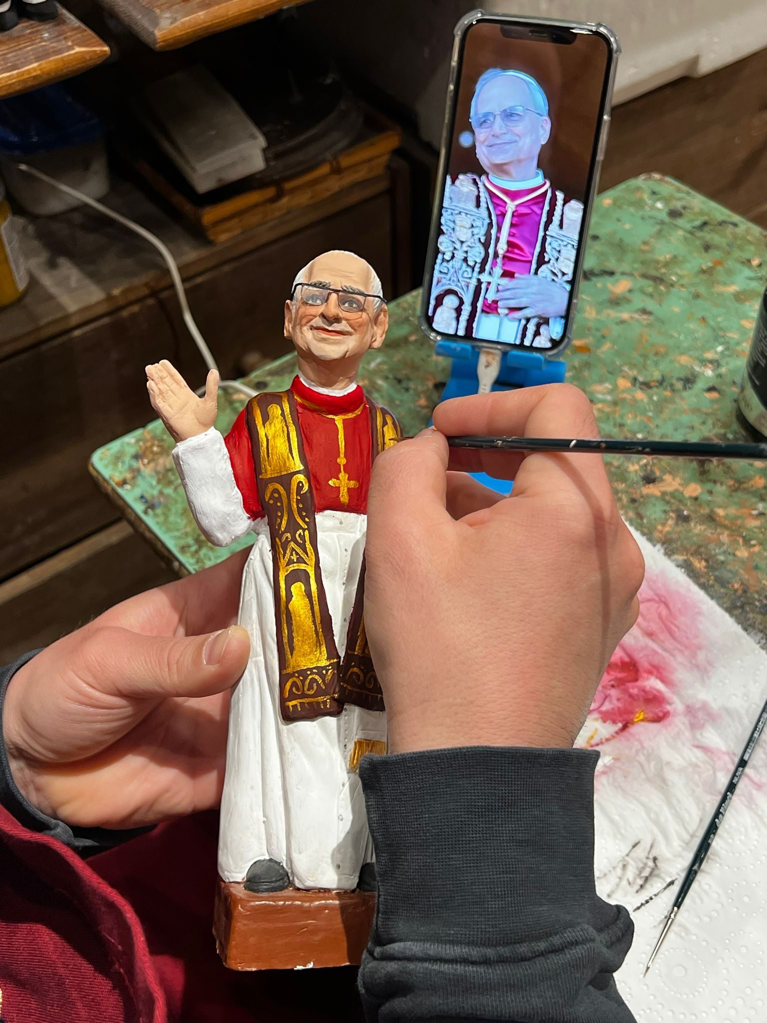 La statuina di Papa Leone XIV approda a San Gregorio Armeno, la strada delle botteghe dei presepi e dei pastori di Napoli, famosa nel mondo. È opera del maestro artigiano Genny Di Virgilio, che ha voluto dedicare così un suo omaggio al nuovo Sommo Pontefice, Robert Francis Prevost, il primo Papa nord americano della storia.