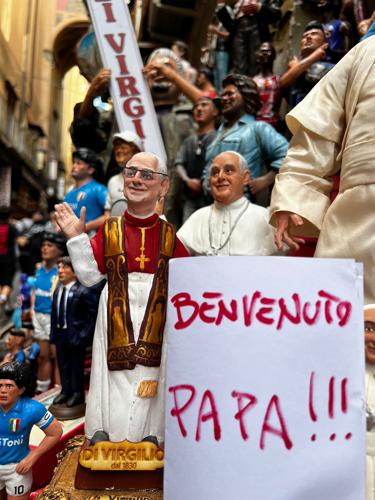 La statuina di Papa Leone XIV approda a San Gregorio Armeno, la strada delle botteghe dei presepi e dei pastori di Napoli, famosa nel mondo. È opera del maestro artigiano Genny Di Virgilio, che ha voluto dedicare così un suo omaggio al nuovo Sommo Pontefice, Robert Francis Prevost, il primo Papa nord americano della storia.