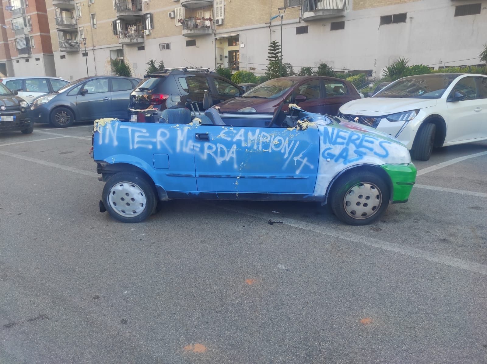 Sono almeno 38 le auto segate e dipinte di azzurro a Napoli per festeggiare lo scudetto e poi abbandonate in strada. Sono state sequestrate dalla Polizia Locale. Altre 3 sono state incendiate.