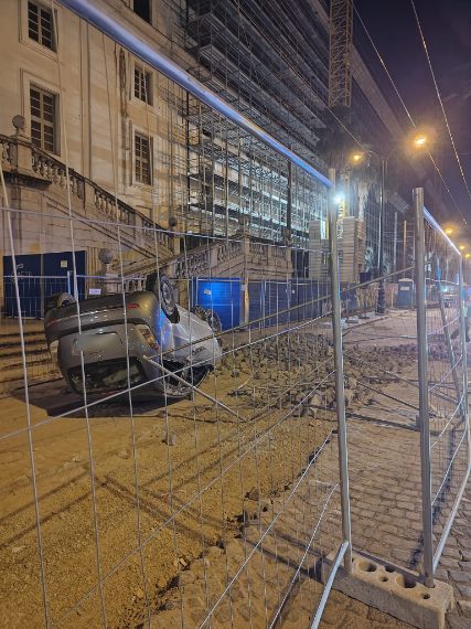 Incidente stradale a piazza Carlo III, a Napoli, dove un'auto, nella serata di domenica 15 giugno, si è schiantata nel cantiere stradale, davanti all'Albergo dei Poveri.