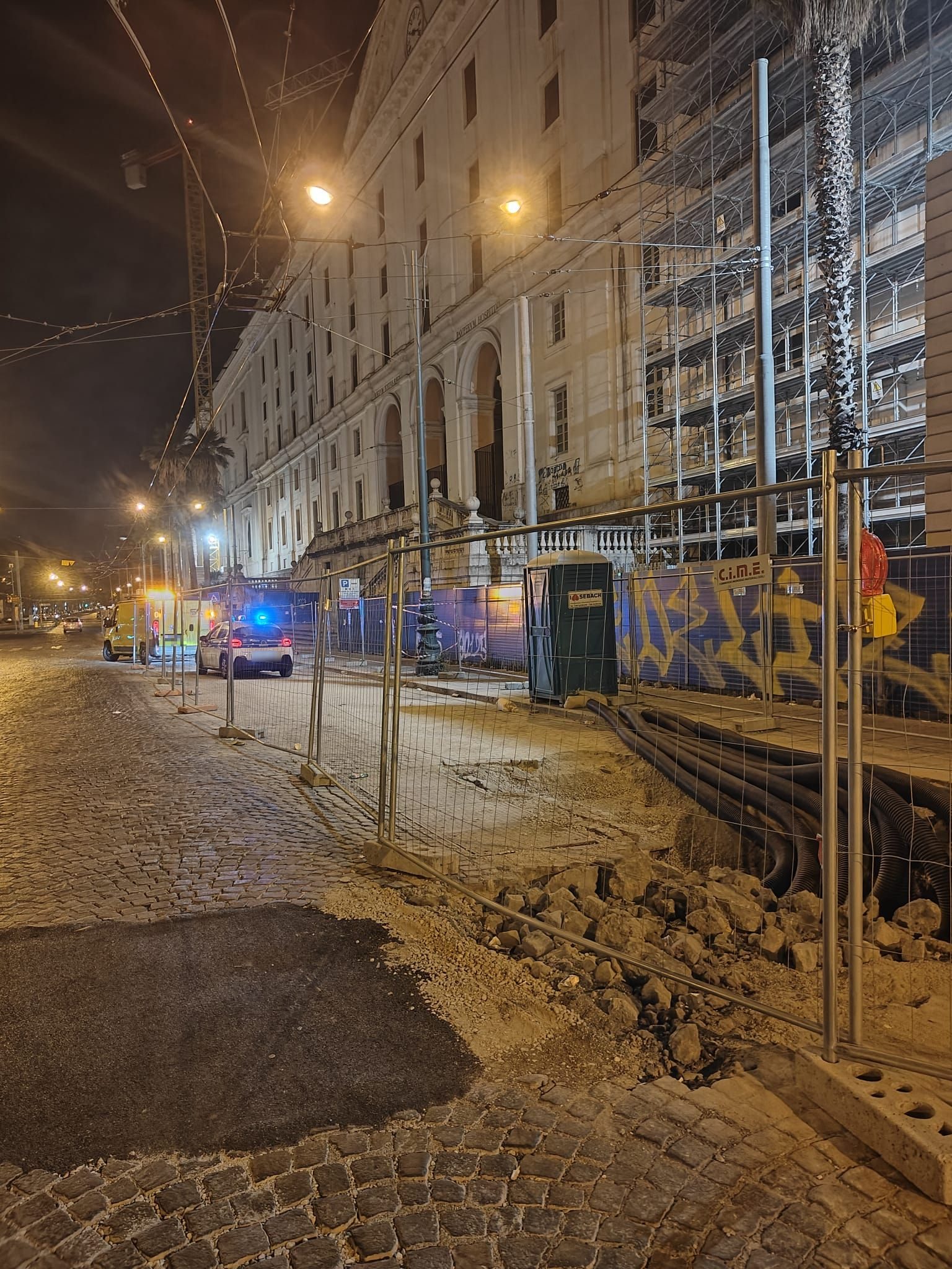 Incidente stradale a piazza Carlo III, a Napoli, dove un'auto, nella serata di domenica 15 giugno, si è schiantata nel cantiere stradale, davanti all'Albergo dei Poveri.