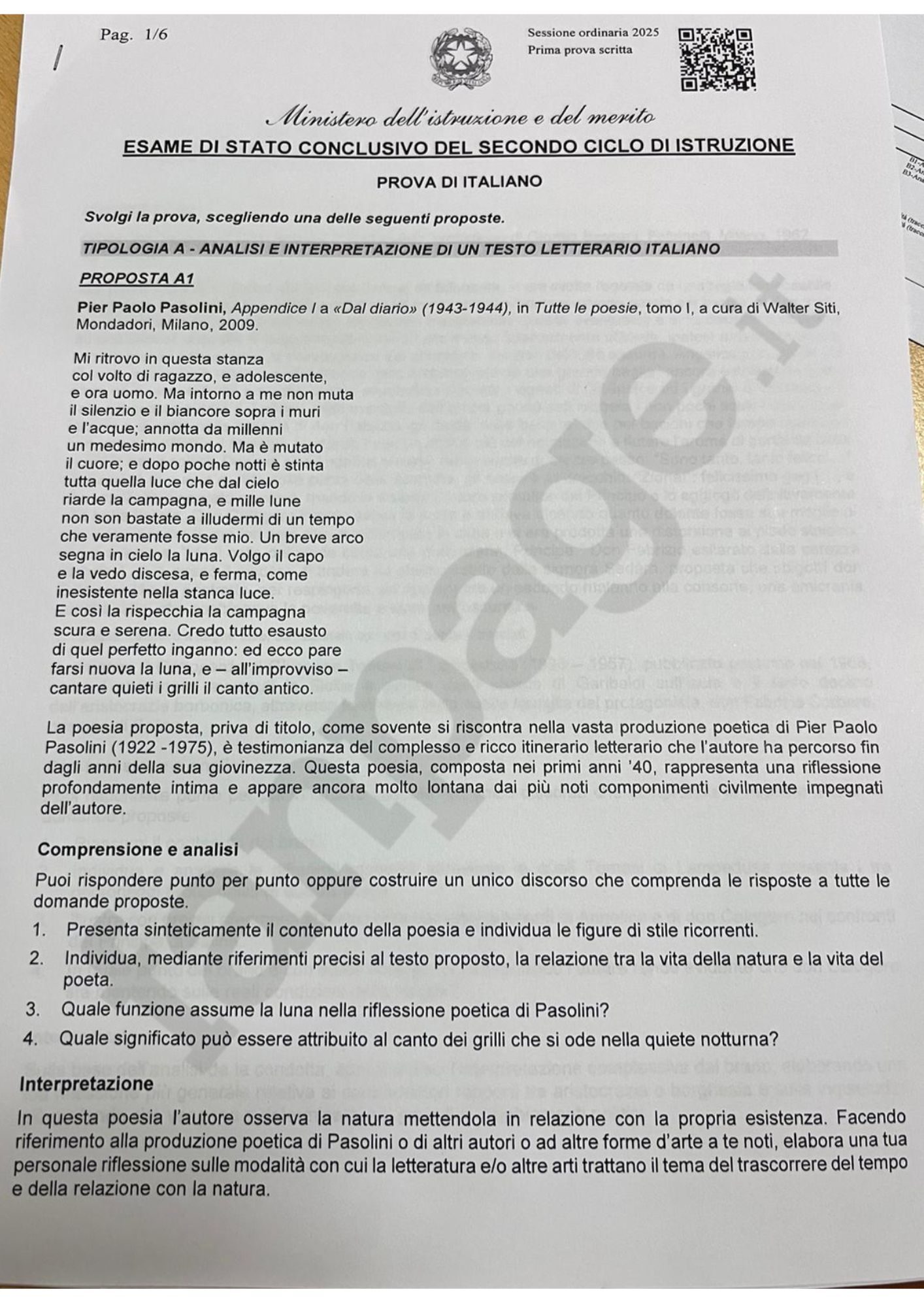 Tutte le foto delle tracce dell'esame di maturità 2025.