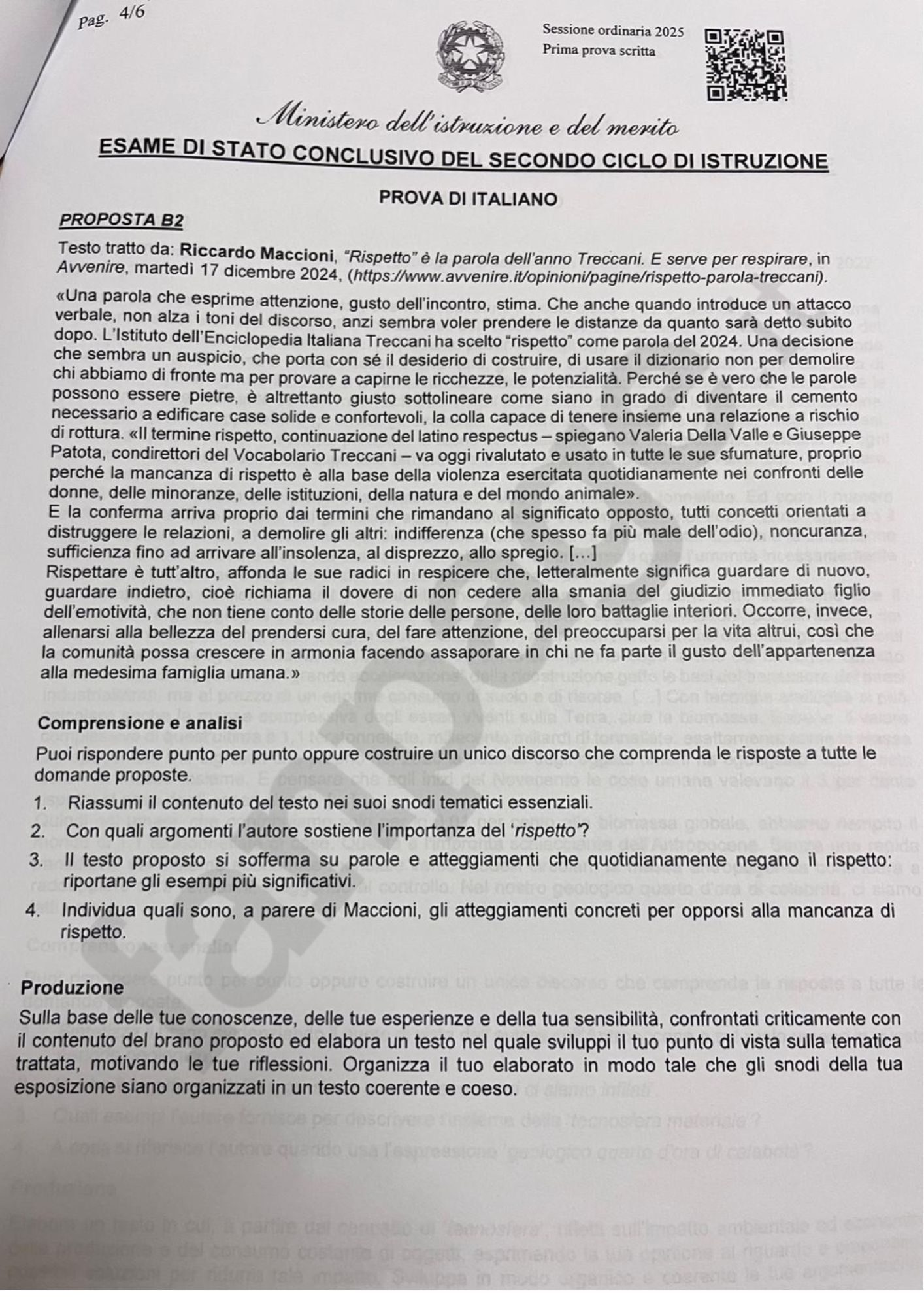 Tutte le foto delle tracce dell'esame di maturità 2025.