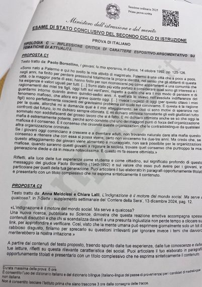 Tutte le foto delle tracce dell'esame di maturità 2025.