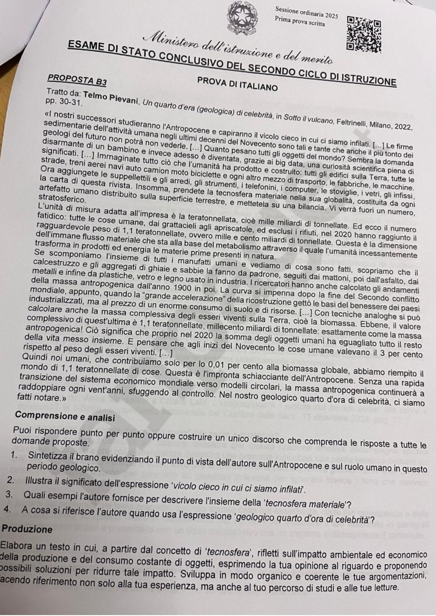 Tutte le foto delle tracce dell'esame di maturità 2025.