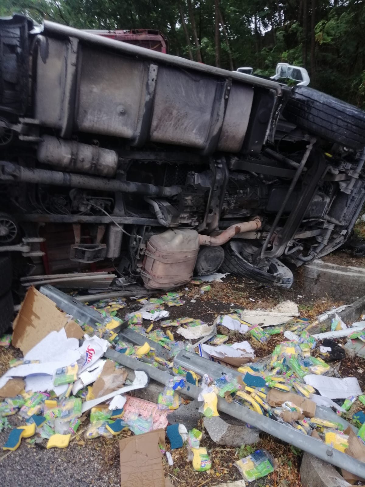 Violento incidente stradale sulla autostrada A2 Salerno-Reggio Calabria. Un tir si ribalta, rovesciandosi su un fianco, dopo lo svincolo di Campagna.
