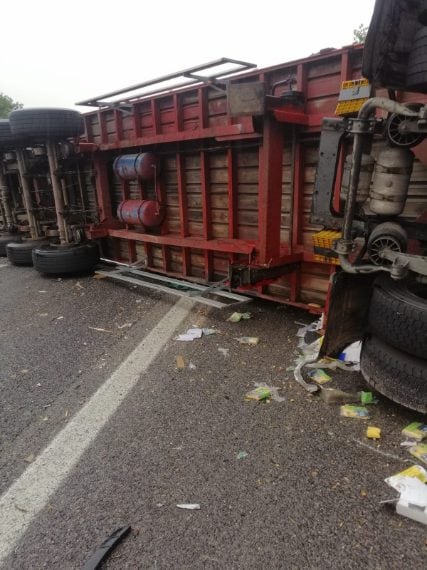 Violento incidente stradale sulla autostrada A2 Salerno-Reggio Calabria. Un tir si ribalta, rovesciandosi su un fianco, dopo lo svincolo di Campagna.