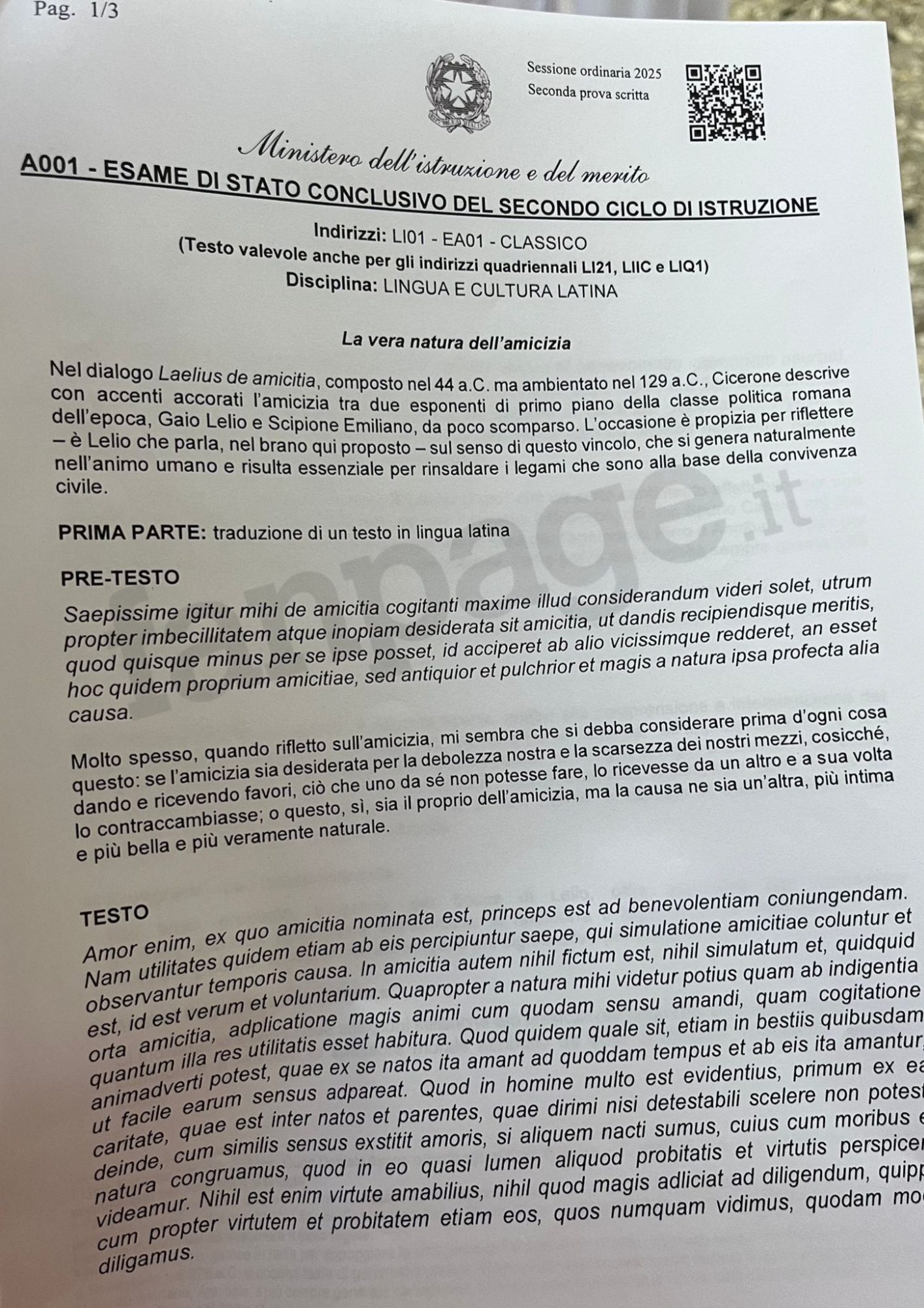 Le tracce scelte dal Mim per la seconda prova scritta di oggi per la Maturità 2025. Al Liceo Classico è uscita una versione di Cicerone tratta da De Amiticia. Al liceo Scientifico Cartesio con studio di funzione.