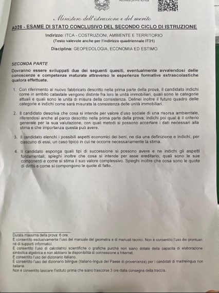 Seconda prova Maturità 2025, le foto delle tracce per materia