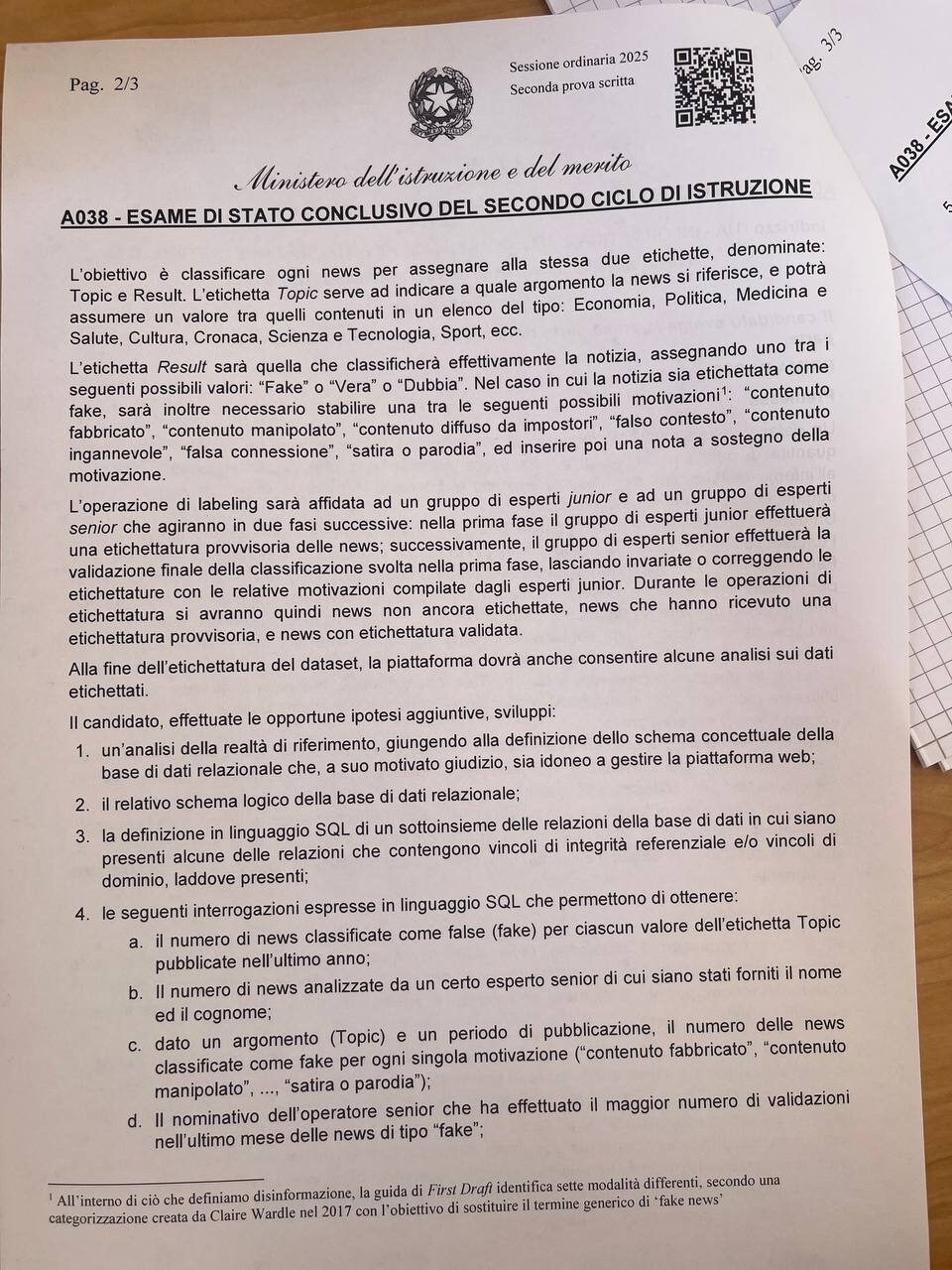 Seconda prova Maturità 2025, le foto delle tracce per materia