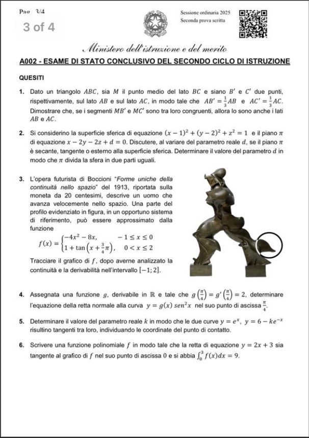 Seconda prova Maturità 2025, le foto delle tracce per materia