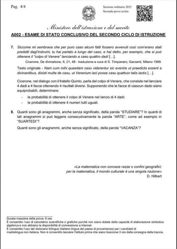 Seconda prova Maturità 2025, le foto delle tracce per materia