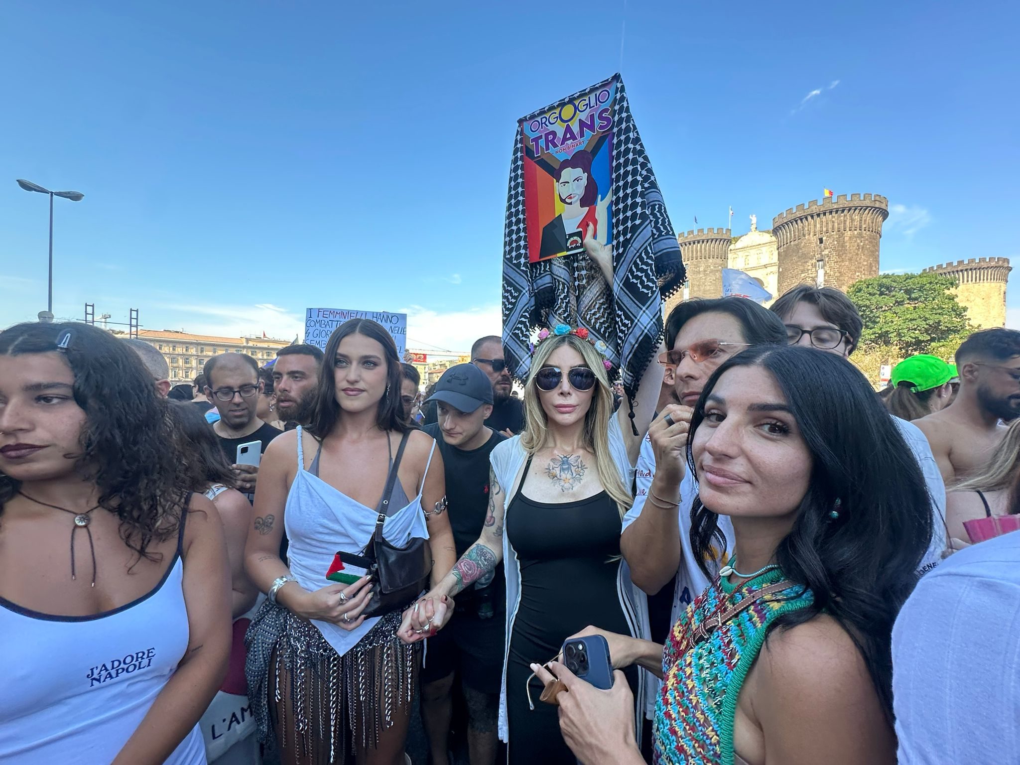 In migliaia sono partiti da piazza Municipio verso piazza Dante per il Napoli Pride, oggi pomeriggio, 5 luglio. Nel corteo molte bandiere e slogan Pro Palestina. Madrina dell'evento la cantante Gaia, che ha marciato dietro lo striscione, insieme agli altri attivisti.
