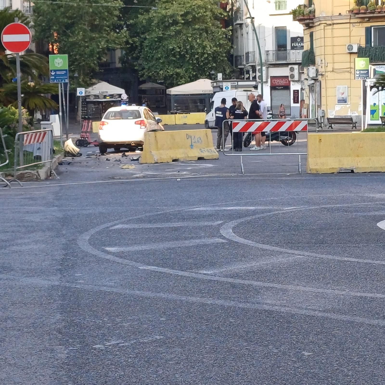Vomero, si schianta con l'auto contro i new jersey di cemento di piazza degli Artisti