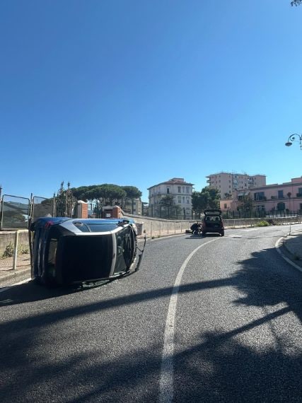 Incidente a Napoli, Smart si ribalta in via Tasso, c'è un ferito