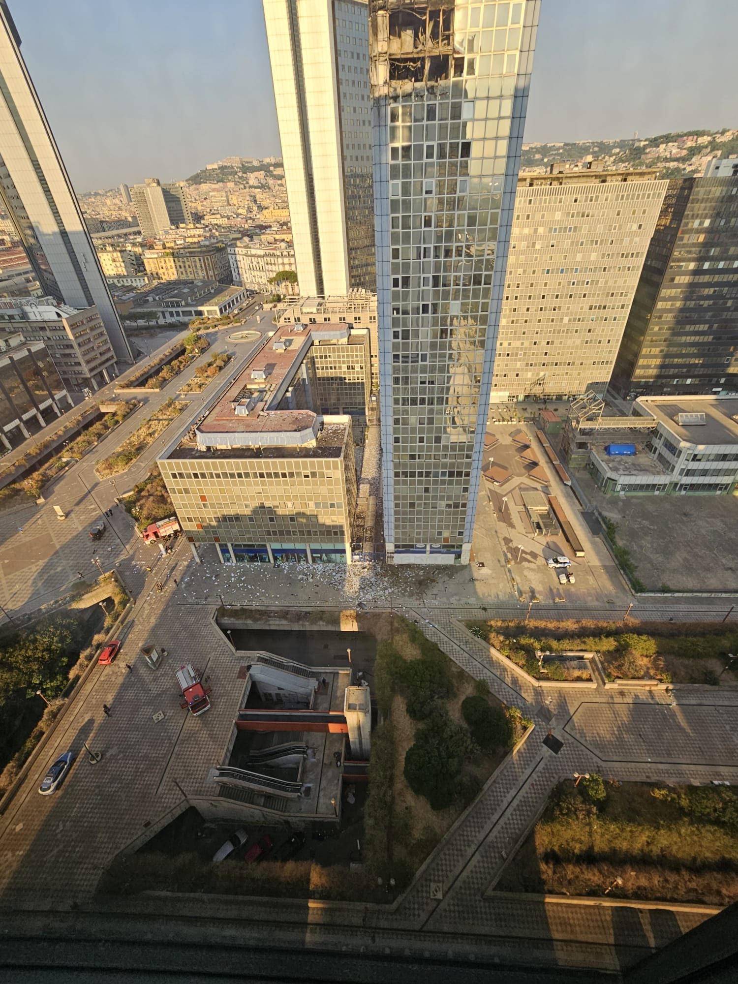 Incendio al Centro Direzionale di Napoli, distrutti dalle fiamme due piani di un grattacielo