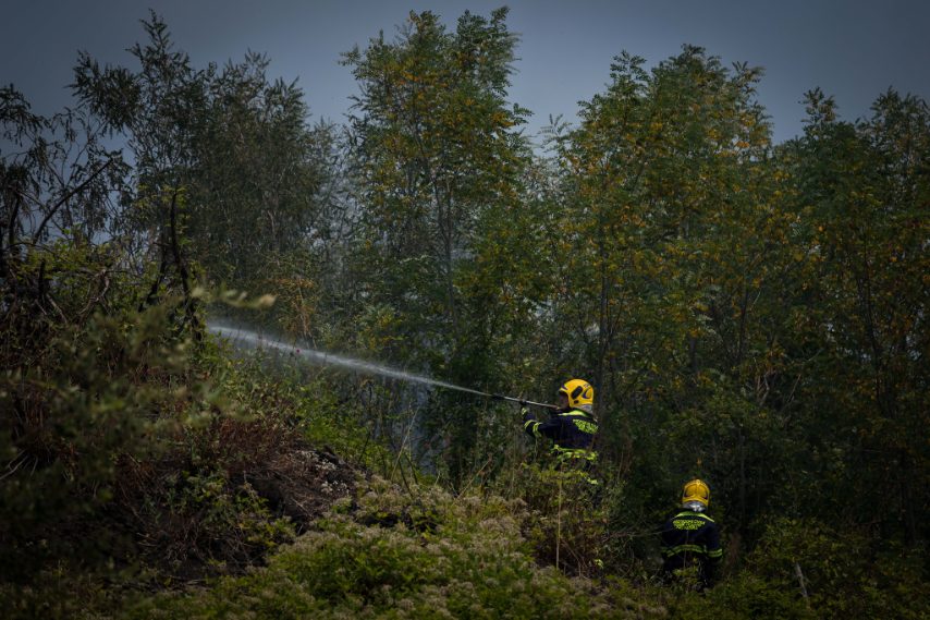 Incendio nel Parco Nazionale del Vesuvio, divampato circa 6 giorni fa. Continuano gli interventi dei Vigili del Fuoco e della Protezione Civile con quattro Canadair e due elicotteri - Boscoreale, provincia di Napoli, 11 agosto 2025. (Foto Alessandro Garofalo/LaPresse)