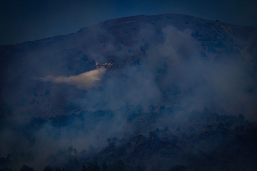 Incendio nel Parco Nazionale del Vesuvio, divampato circa 6 giorni fa. Continuano gli interventi dei Vigili del Fuoco e della Protezione Civile con quattro Canadair e due elicotteri - Boscoreale, provincia di Napoli, 11 agosto 2025. (Foto Alessandro Garofalo/LaPresse)
