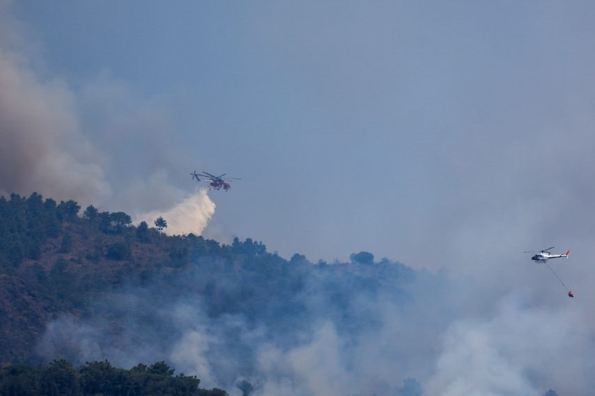 Incendio nel Parco Nazionale del Vesuvio, divampato circa 6 giorni fa. Continuano gli interventi dei Vigili del Fuoco e della Protezione Civile con quattro Canadair e due elicotteri - Boscoreale, provincia di Napoli, 11 agosto 2025. (Foto Alessandro Garofalo/LaPresse)