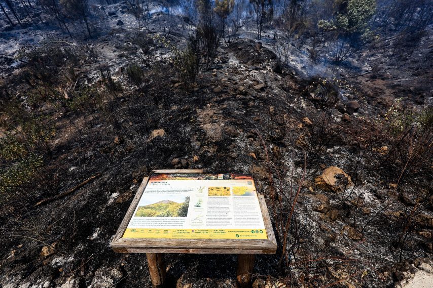 Incendio nel Parco Nazionale del Vesuvio, divampato circa 6 giorni fa. Continuano gli interventi dei Vigili del Fuoco e della Protezione Civile con quattro Canadair e due elicotteri - Boscoreale, provincia di Napoli, 11 agosto 2025. (Foto Alessandro Garofalo/LaPresse)