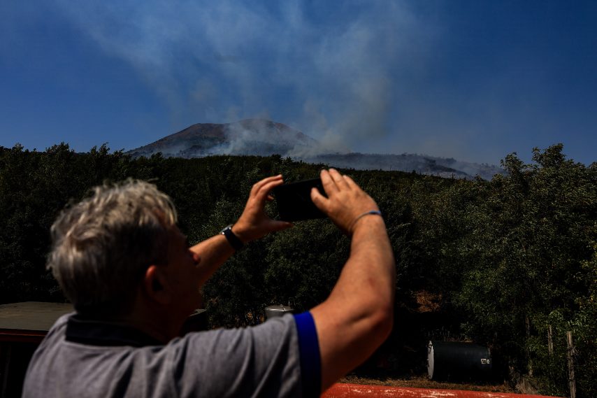 Incendio nel Parco Nazionale del Vesuvio, divampato circa 6 giorni fa. Continuano gli interventi dei Vigili del Fuoco e della Protezione Civile con quattro Canadair e due elicotteri - Boscoreale, provincia di Napoli, 11 agosto 2025. (Foto Alessandro Garofalo/LaPresse)