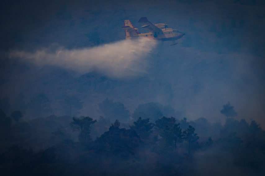 Incendio nel Parco Nazionale del Vesuvio, divampato circa 6 giorni fa. Continuano gli interventi dei Vigili del Fuoco e della Protezione Civile con quattro Canadair e due elicotteri - Boscoreale, provincia di Napoli, 11 agosto 2025. (Foto Alessandro Garofalo/LaPresse)