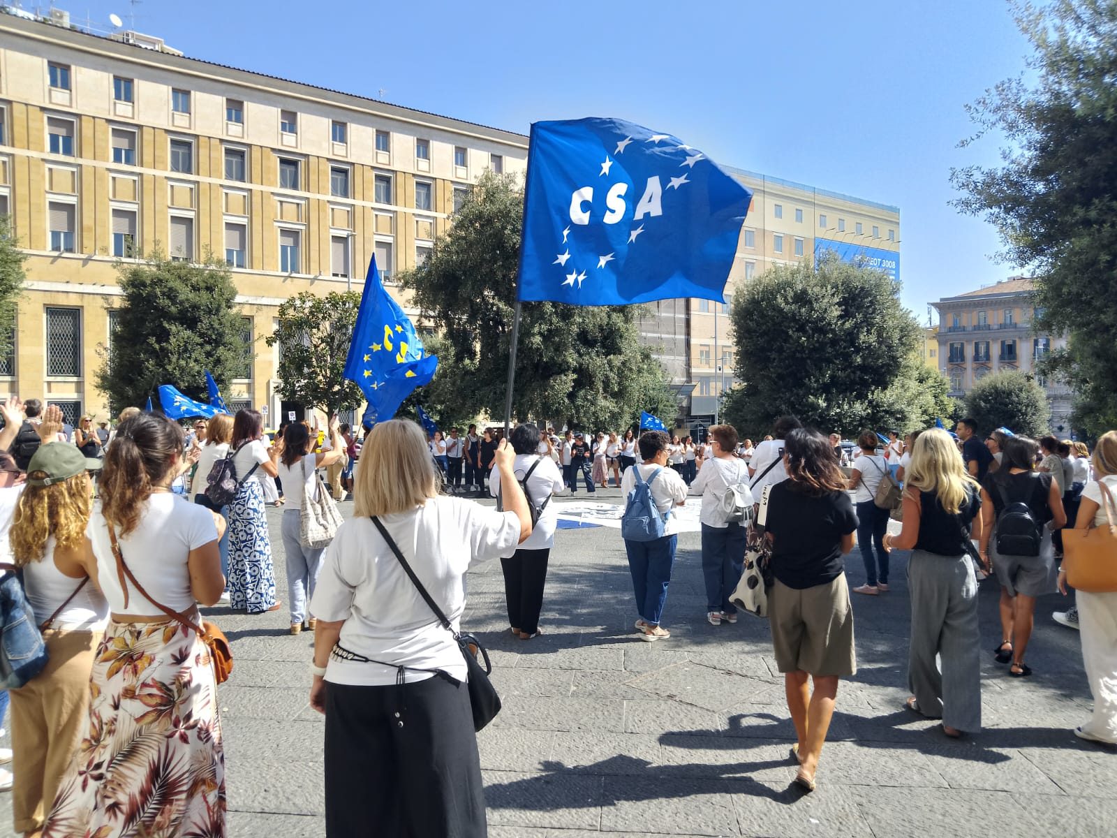 Protesta con centinaia di maestre in piazza Municipio a Napoli. L'assemblea è stata indetta dal sindacato Csa: "Più risorse e no alla privatizzazione".