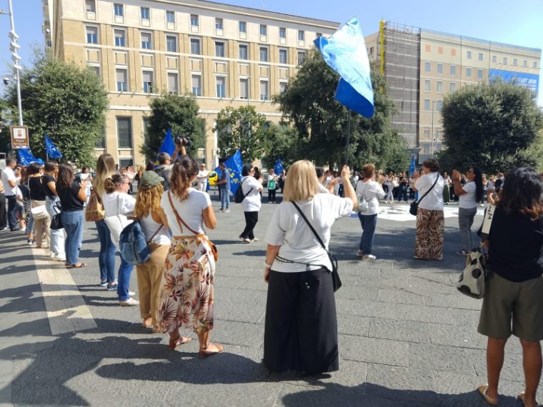 Napoli, protesta con centinaia di maestre in piazza Municipio