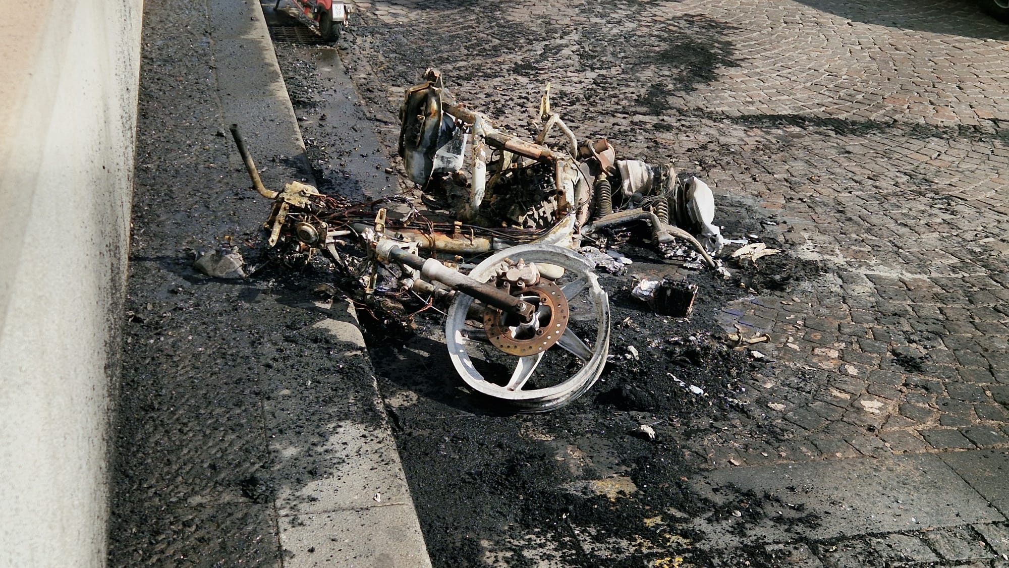 Incendio a Napoli, scooter in fiamme a piazza Municipio: traffico impazzito al centro storico
