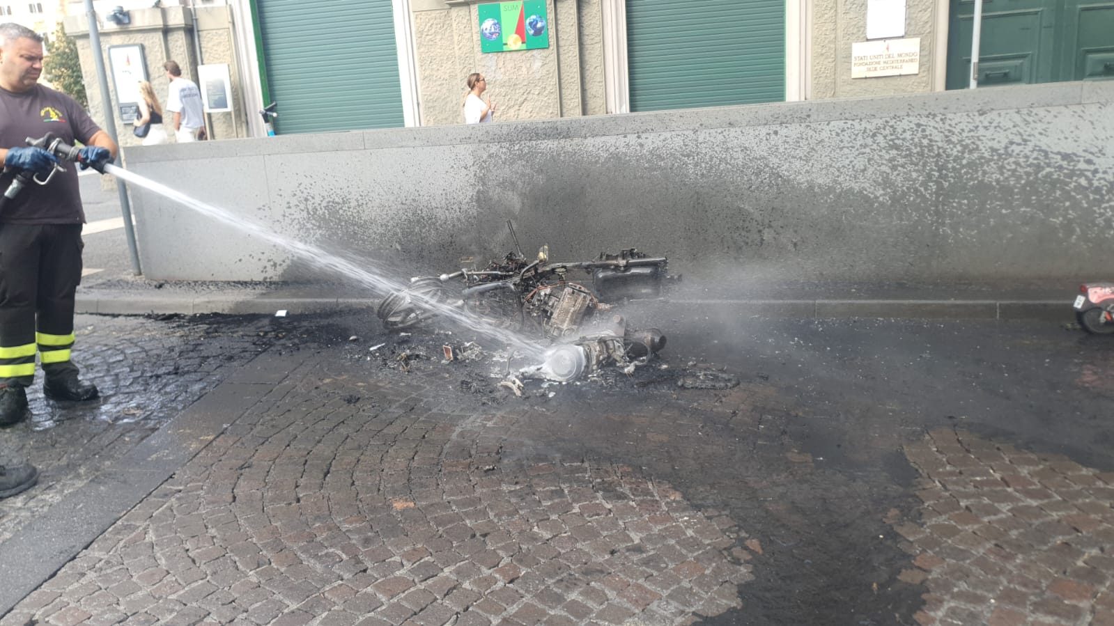 Incendio a Napoli, scooter in fiamme a piazza Municipio: traffico impazzito al centro storico