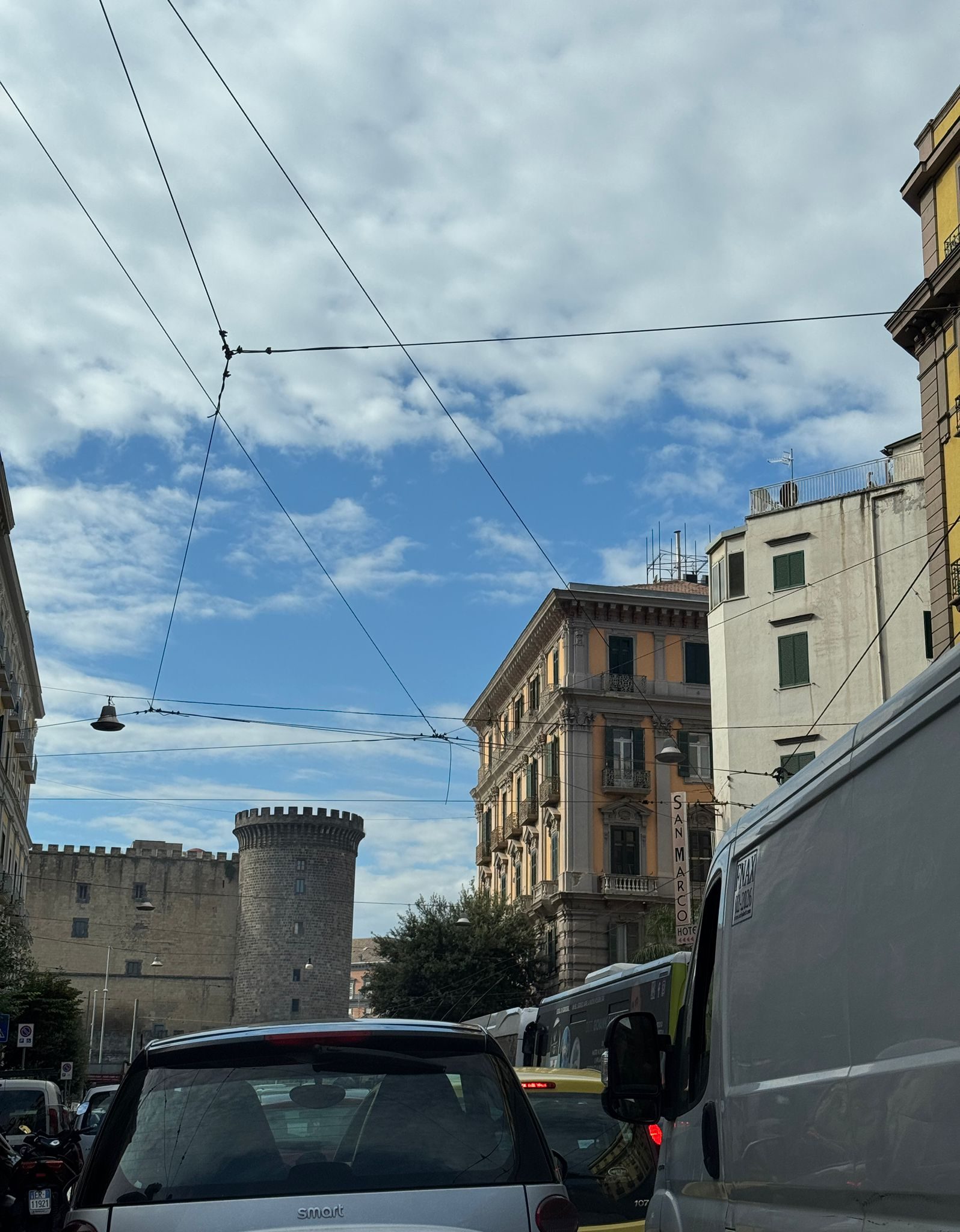 Traffico impazzito al centro di Napoli per un motorino in fiamme tra via Depretis e piazza Municipio. Lunghe code. Sul posto vigili del fuoco e polizia locale.