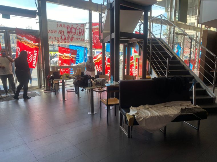 Presidio permanente dei lavoratori dell’ex Burger King della Stazione di Napoli Centrale. Presenti anche i sindacati: “Dopo 30 anni presi e buttati in strada”.
