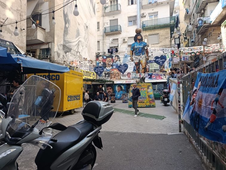 A Largo Maradona ai Quartieri Spagnoli i vigili sequestrano e bloccano le bancarelle