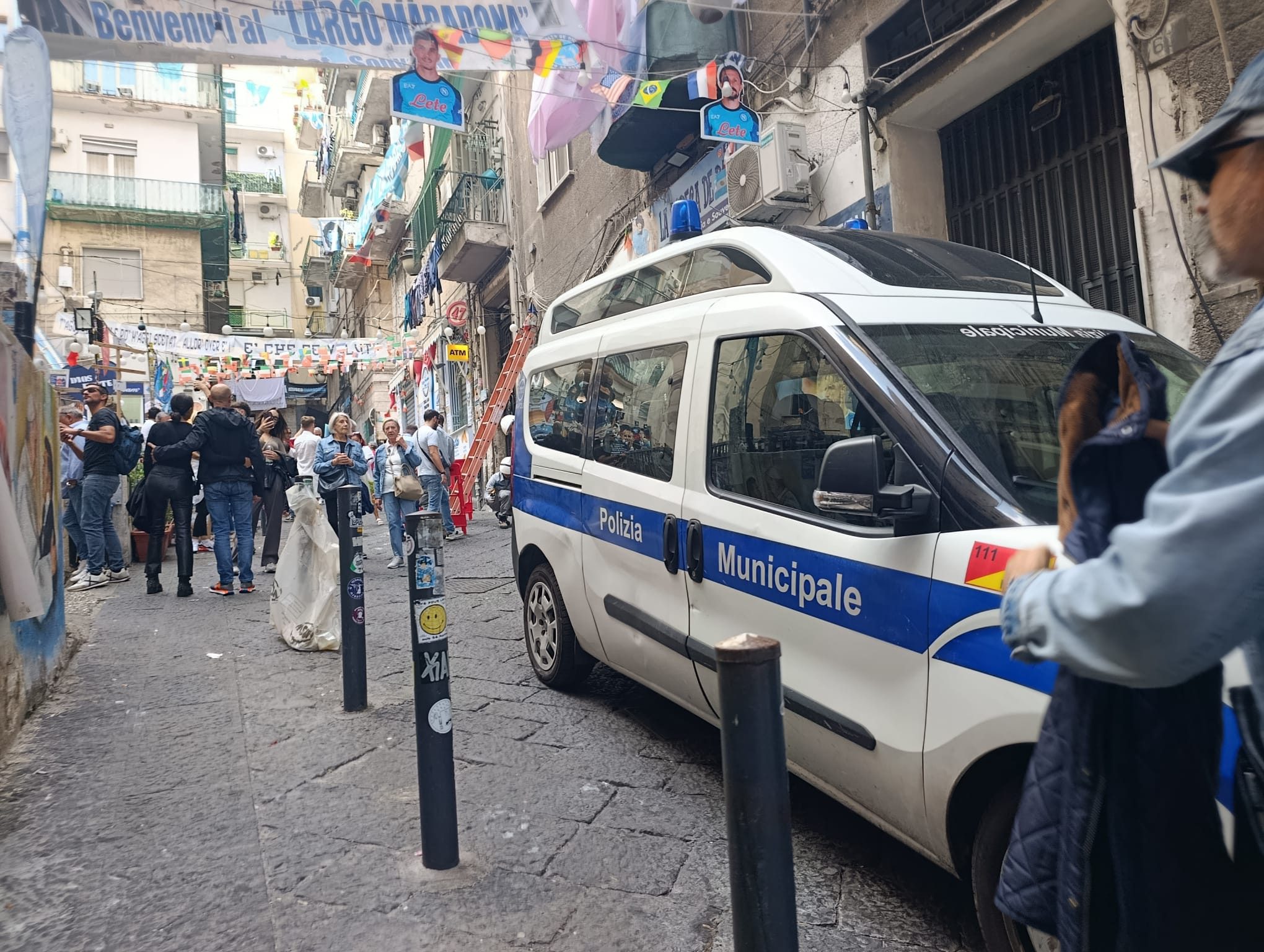 A Largo Maradona ai Quartieri Spagnoli i vigili sequestrano e bloccano le bancarelle